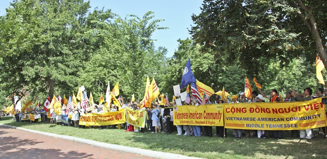 Hơn nữa khi ông Trương Tấn Sang nói những điều này với ông Obama và sau đó, với hàm ư ngọai giao tại CSIS, th́ cũng đă có gần 2.000 người Mỹ, Canada và Úc gốc Việt biểu t́nh chống chính sách cai trị độc tài của đảng cộng sản Viêt Nam và đ̣i quyền con người và các quyền tự do tự do khác, trong đó có tự do tôn giáo và tự do ngôn luận phải được tôn trọng ở Việt Nam.