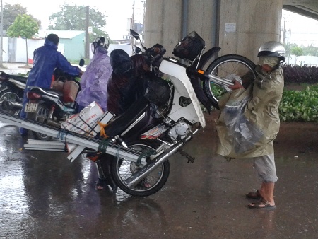 Một giờ kiếm vài triệu đồng nhờ xe chết máy ngày mưa bão