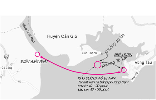Cơ quan chức năng TP.HCM và tỉnh Bà Rịa-Vũng Tàu xác định địa điểm ca nô bị ch́m chỉ cách mũi Cần Giờ (H.Cần Giờ) khoảng 10 km, mũi Vũng Tàu (TP.Vũng Tàu) khoảng 20 km. Đại diện một công ty chuyên đóng mới ca nô ở TP.Vũng Tàu khẳng định, với quăng đường này, một chiếc ca nô cứu hộ (công suất khoảng 85 - 200 CV, loại ca nô khá phổ biến hiện nay), dù xuất phát ở mũi Cần Giờ hay mũi Vũng Tàu, th́ chỉ cần khoảng từ 10 - 20 phút; với tàu cá của ngư dân cũng chỉ mất 40 - 50 phút. Vậy v́ sao địa điểm gặp nạn chỉ cách bờ khoảng như vậy mà các nạn nhân phải vật lộn trên biển suốt nhiều giờ đồng hồ, để dẫn đến hậu quả quá thảm khốc?
