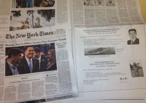 Con tỉ phú TQ quảng bá chủ quyền trên báo Mỹ