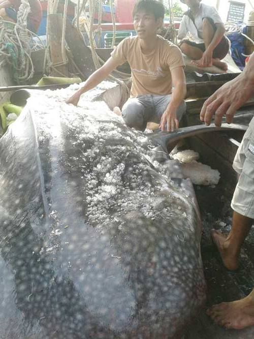 Cá mập khổng lồ mắc lưới ở Nghệ An