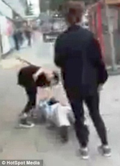Cô gái đẩy cụ ông 80 tuổi xuống đất rồi nhổ nước bọt