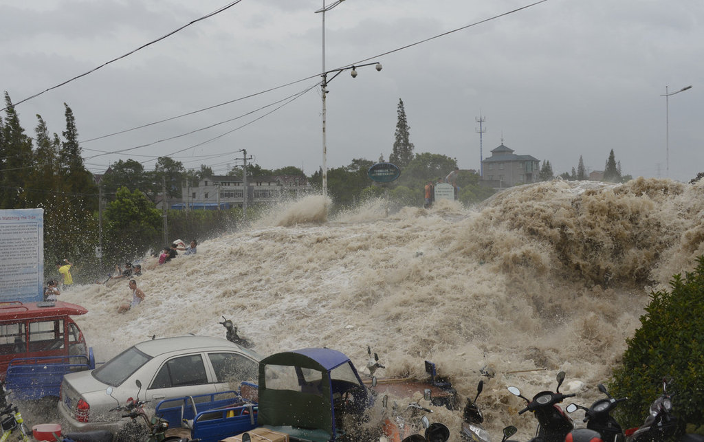 Ảnh: Sóng dữ bất ngờ đánh văng cả trăm người dân Trung Quốc