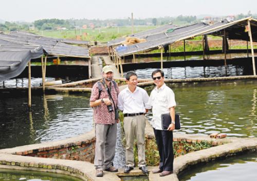 Đỗ Quang Tùng, GĐ CITES Việt Nam và ông Pepper W. Trail đại diện của CITES thế giới thăm trại cá tầm của công ty Việt Đức.