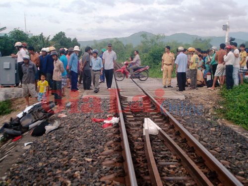 Mô tô lao vào tàu hỏa, một phụ nữ thoát chết