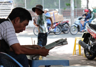 Đọc báo buổi sáng tại một góc cà phê vỉa hè Sài Gòn./RFA photo