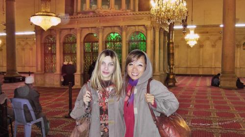 Phương Mai (phải) cùng Naura, bạn thân người Syria, ở thánh đường Damascus