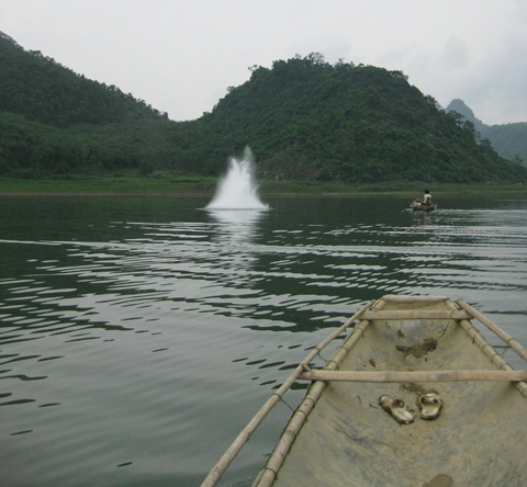 Cảnh tượng nổ ḿn đánh bắt cá ở hồ Thác Bà.