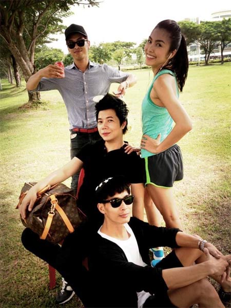 Hà Tăng mặc áo phông, quần short đi dã ngoại