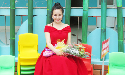 Vy Oanh đỏ rực dự khai giảng trường mầm non