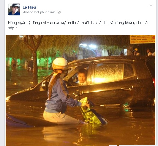 Ca sĩ Lê Hiếu đăng ảnh bức xúc về hiện trạng ngập lụt