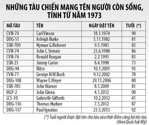 Đặc biệt, từ năm 1973, Washington quyết định lại đặt tên người còn sống cho tàu chiến.