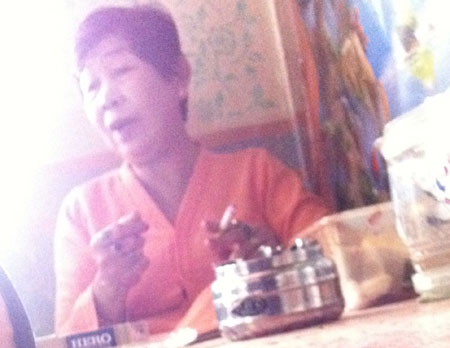 Dù không ra giá cụ thể cục đồng đen nhưng Cô Hai biết nh́n vào cách ăn mặc và túi tiền của “phật tử” mà định giá bùa, phép của ḿnh. Mỗi lần làm phép, Cô Hai huưt sáo, tay vẽ vằn vện giống như chữ Tàu và kết thúc bằng câu “dư lượt” kéo dài, mà nghe đi nghe lại đến 10 lần, chúng tôi vẫn không biết “Cô Hai” đang nói tiếng của nước nào (?).