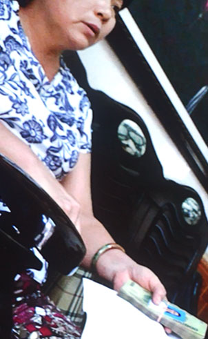| Bà P. với cọc tiền 10 triệu đồng của người được “chạy” biên chế vào Sở Y tế tỉnh Nghệ An thành công |