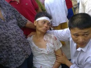 Một trong sáu nông dân ở xă Xuân Quan, huyện Văn Giang,tỉnh Hưng Yên bị 20 người mặc thường phục ập đến tấn công hôm 12-07-2012. - Citizen photo