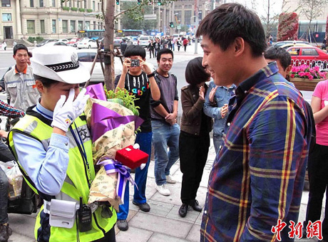 Nữ cảnh sát được cầu hôn hoành tráng giữa phố