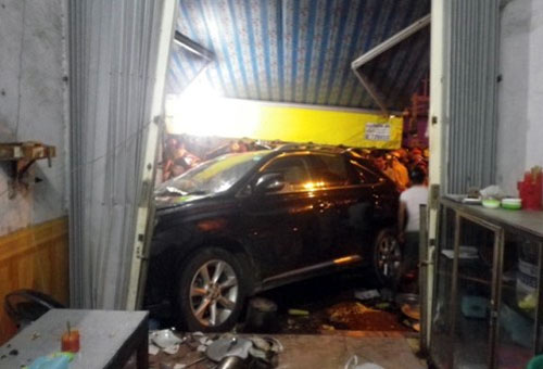 Hãi hùng Lexus tông xe máy rồi lao vào quán phở