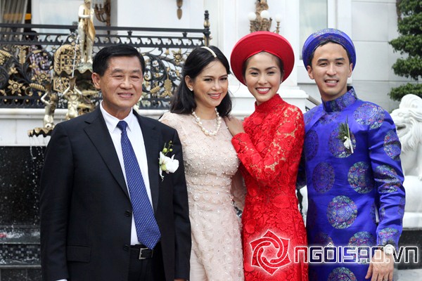 Hà Tăng bên chồng và bố mẹ chồng trong ngày cưới
