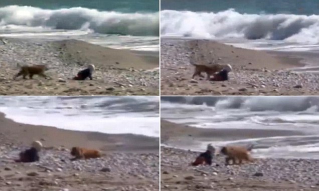 Chú chó thông minh, dũng cảm bảo vệ em bé không lao xuống biển