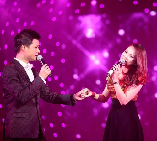 Quang Dũng và Thanh Thảo t́nh tứ trên sân khấu trong chuyến lưu diễn Ukraine vừa qua