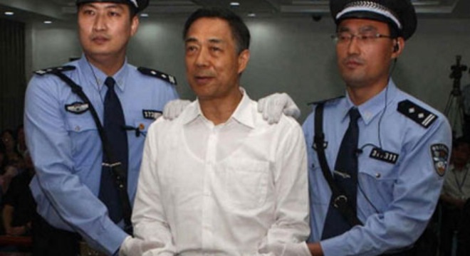 Bạc Hy Lai bị c̣ng tay sau khi bị tuyên án .