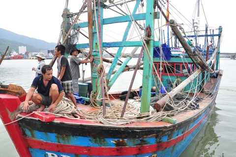Ngư dân đưa tàu vào bờ neo đậu tránh bão số 10.