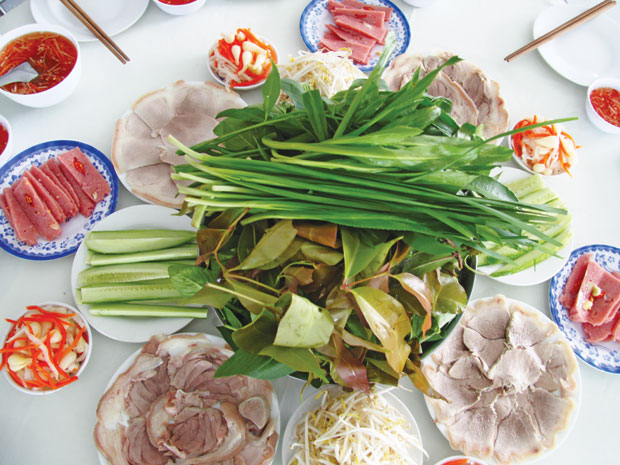 thit heo banh' trang' cuon rau song la` mon' cua que huong FL80 !