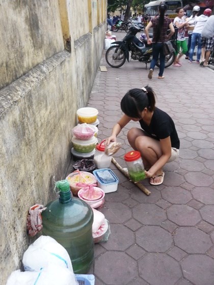 Ngay từ khi dọn hàng, đá, các tô đựng chè đã được bày la liệt ra đất, lẫn bụi bẩn và chẳng hề được che đậy trong khi chủ cửa hàng lôi từ trong một chiếc tủ gáu bẩn không kém nhà vệ sinh công cộng ra hàng loạt cốc, thìa cũng bẩn chẳng kém. Không khó để thấy, mỗi quán chè như vậy thường chỉ có 1 – 2 chiếc khăn vừa để lau bàn, vừa để lau cốc chén, thìa, dĩa.