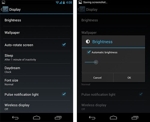 - Chỉnh độ sáng màn hình: Điện thoại có màn hình càng lớn và có độ sáng càng cao thì sẽ gây hao pin nhiều. Mặc định, hầu hết mọi thiết bị đều có sẵn chế độ tự điều chỉnh độ sáng màn hình theo môi trường xung quanh (Automatic brightness). Dù vậy, để tiết kiệm tối đa, bạn nên tự điều chỉnh độ sáng xuống mức vừa phải để tiết kiệm pin mà vẫn dễ theo dõi những nội dung hiển thị trên màn hình.