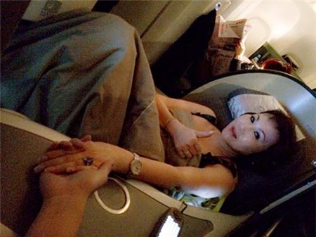 Nằm ngủ trên trên máy bay Vũ Hoàng Việt vẫn nắm chặt tay tình già