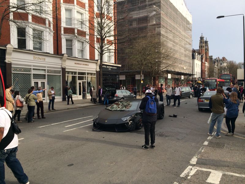 Vừa qua một chiếc Lamborghini Aventador màu đen mờ vừa gặp tai nạn tại London. Do di chuyển với tốc độ khá cao và không thể làm chủ chiếc xe, siêu xe Aventador đã đâm vào một chiếc BMW 3-Series trên đường Sloane Street khiến mũi xe bên phải bị biến dạng hoàn toàn, gương chiếu hậu phải gập lại và mũi xe bên trái bị hư hại nhẹ. Lúc xảy ra tai nạn có rất nhiều người xung quanh, nhưng rất may là không hề có ai bị thương, kể cả hai người tài xế.