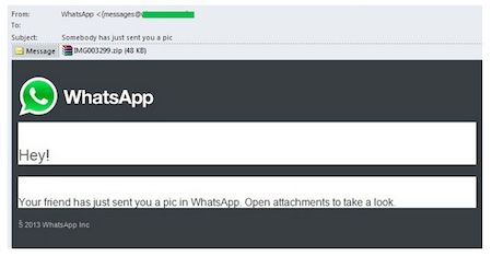 Cụ thể, tội phạm mạng sẽ mạo danh các ứng dụng OTT để gửi email đến người dùng đang sử dụng dịch vụ OTT. Khi nhận được một email được cho là của WhatsApp, sẽ có rất ít người dùng nghi ngờ mặc dù thực tế WhatsApp không liên quan trực tiếp đến một dịch vụ email. Sự thiếu thận trọng có thể sẽ phải trả giá đắt, vì email lừa đảo thường được đính kèm Backdoor.Win32.Andro m.bjkd khét tiếng, có chức năng chính là để ăn cắp dữ liệu cá nhân của người sử dụng.