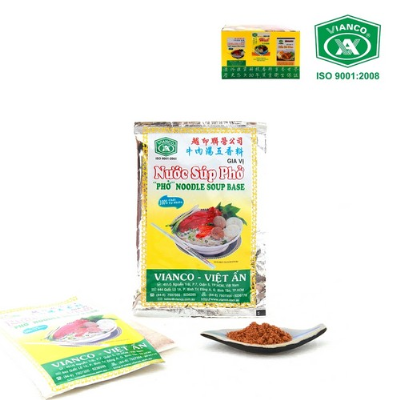 Gia vị chính: bột phở Vianco được tinh chế từ nguyên liệu thiên nhiên như quế, đại hồi, hạt ngò, tiểu hồi, tỏi, hành tây, hành ta, tiêu, muối...