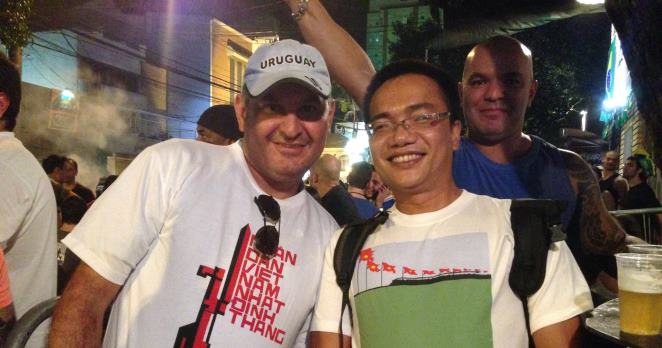 Vợ chồng anh Rodrigo và chị Penetta hồ hởi khi gặp nhóm phóng viên của báo Thể thao & Văn hóa tới khu Vila madalena, nơi có nhiều quán bar và là tụ điểm của giới trẻ trung lưu Sao Paulo. Nhà báo Đức Lộc, sau buổi trò chuyện rôm rả, đã tặng anh Rodrigo chiếc áo có dòng chữ “Nhân dân Việt Nam nhất định thắng”.