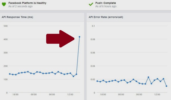 Nhiều người cũng chia sẻ biểu đồ thời gian phản hồi API của Facebook tăng vọt trong khoảng 15 giờ chiều.