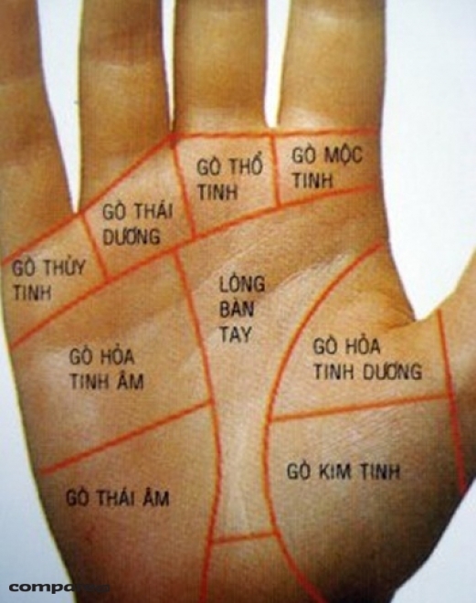 Người có bốn gò nằm ở gốc bốn ngón tay là gò Mộc Tinh, gò Thổ Tinh, gò Thái Dương và gò Thủy Tinh đều nổi cao đầy đặn, lòng bàn tay lõm xuống, cả bàn tay hồng hào thì có tầm nhìn xa trông rộng, dũng cảm, có thể chịu đựng gian khổ, có năng lực đảm đương những trọng trách lớn. Trong sự nghiệp có thể đạt thành công rực rỡ.