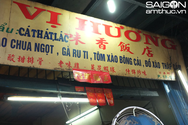 Quán cơm Vị Hương trong Chợ Lớn vốn trứ danh với những món Hoa như hủ tiếu xào, mì xào giòn, cơm sườn xào chua ngọt... Đây cũng là mô hình quán Hoa quen thuộc ở Sài Gòn, thường bán vào giấc chiều trở đi cho đến tận buổi khuya. Đi chơi về trễ, tạt vào làm một dĩa mì xào hay cơm chiên nóng hổi thì còn gì thú vị hơn!