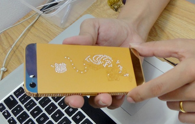 Hiện nay, dịch vụ thông dụng là sau mạ vàng là chạm khắc, tráng gương vỏ để điện thoại long lanh hơn.