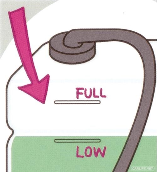 Nếu mực nước làm mát thấp hơn mức “Low” trong bình nước phụ thì phải mở nắp bình nước phụ và nắp két nước để châm nước thêm nếu cần thiết.