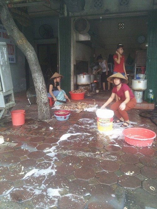 Trong vai sinh viên làm thêm tại một quán phở trên đường Xuân Thủy (Cầu Giấy) phóng viên báo điện tử Công lý tiếp cận được với nhân viên phục vụ của quán. Khi được hỏi về nguồn mua xương “tái chế” ở đâu thì nhân viên trả lời lấp liếm: “Có xe máy chở đến từ sáng sớm, nhưng chỉ lấy loại hầm 1 lần, xương ống chặt ra vẫn còn tủy thì mới lấy. Nhưng không phải ngày nào cũng dùng loại này, chỉ hôm nào không có nhiều xương mới cho phụ thêm vào cho nước ngọt hơn thôi”.