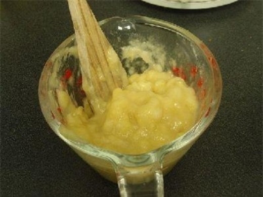 Thêm thịt chuối chín được nghiền nát và trộn đều.