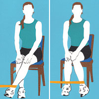 Ngồi để băng chun được neo phía bên phải của bạn và quấn xung quanh mắt cá chân trái. Vắt chéo mắt cá chân. Giữ hai đầu gối sát nhau, xoay chân trái ra phía ngoài khoảng 12 inch. Quay trở lại vị trí bắt đầu. Làm tương tự với chân phải.