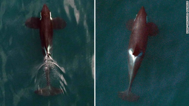 Trong một đoạn video, nhà sinh vật học của Trung tâm Khoa học Thủy sản phía tây nam NOAA, John Durban chỉ ra sự tương phản giữa những con cá voi gầy, được gọi là A-37 ở bên trái và con khỏe mạnh A-47 ở bên phải.