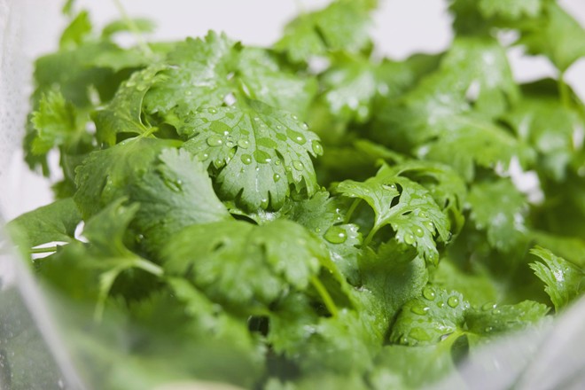 Trong ảnh là rau ngò với mùi đặc trưng và là loại rau thơm phổ biến nhất trong ẩm thực Việt Nam. Người ta dùng rau ngò hay còn gọi là rau mùi để trang trí các đĩa salad trộn hoặc ăn kèm với súp, các món cá hoặc chả giò.