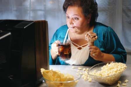 Vẫn biết vừa ăn, vừa xem tivi có thể khiến ta ăn nhiều hơn, hấp thu nhiều calo và tăng cân nhanh hơn nhưng nhiều người vẫn duy trì thói quen này. Điều này rất có hại cho dạ dày của bạn và khiến bạn khó kiểm soát được cân nặng. Nếu bạn có ý định giảm cân hãy hạn chế xem tivi, ngồi máy tính, ipad, đọc sách...Các nghiên cứu cho thấy việc hạn chế xem tivi nói chung giúp giảm cân bởi bạn có thể tiêu hao lượng calo đáng kể. Trên thực tế, bạn đốt cháy nhiều calo trong khi ngủ hơn là lúc xem truyền hình. Do đó người béo được khuyến khích đi bộ hoặc ngủ thay vì xem tivi.