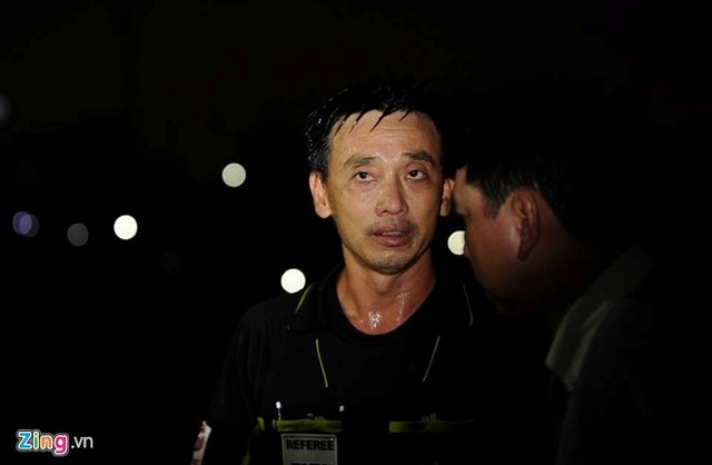 Trọng tài Minh Trí đã cho tạm dừng trận đấu ngay khi mất điện - Ảnh Zing