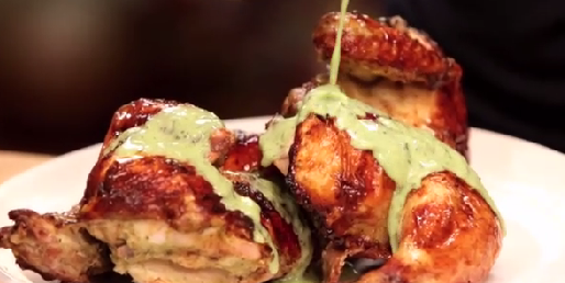 3. Bật lò nướng lên 500 độ F. Bỏ miếng gà ra khỏi bát ướp, để ráo rồi đặt vào giấy nướng (Bỏ phần nước ướp còn lại). Thấm phần trên của gà cho khô rồi tưới dầu lên. Nướng khoảng 30-45 phút. Sau khi nướng xong, đợi khoảng 10 phút rồi thưởng thức.