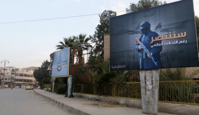 Những tấm biển quảng bá IS được dựng lên ở thành phố Raqqa