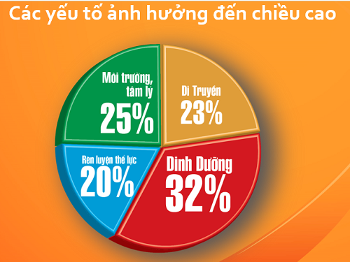 Dinh dưỡng quyết định chiều cao một người (32%), hơn cả di truyền, thể lực, môi trường; song nhiều gia đình Việt chưa chú ý yếu tố này để nâng cao tầm vóc trẻ.