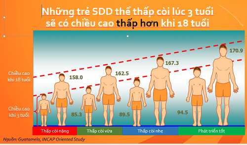 Nghiên cứu cho thấy trẻ bị suy dinh dưỡng lúc 3 tuổi, khi trưởng thành sẽ có chiều cao thấp hơn mức có thể đạt được.